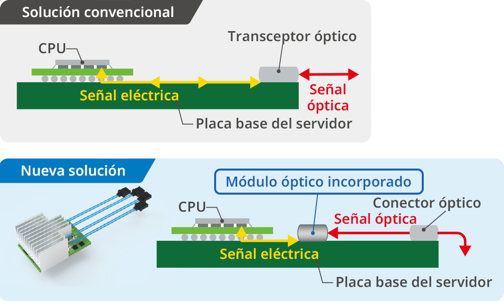 A medida que la adopción de la inteligencia artificial (IA) y la transformación digital se aceleran, la necesidad de comunicaciones de alta velocidad y gran capacidad en los centros de datos y equipos de red crece exponencialmente. Para satisfacer esta demanda y, al mismo tiempo, reducir el consumo energético, están cobrando cada vez más relevancia las tecnologías que sustituyen las señales eléctricas convencionales por señales ópticas.Kyocera está aprovechando sus tecnologías patentadas en placas de circuito y óptica para desarrollar un nuevo dispositivo, el “Módulo Óptico Integrado”, que convierte señales eléctricas en señales ópticas para su transmisión y recepción a alta velocidad. Al convertir las señales eléctricas de fuentes como las CPU en señales ópticas, el dispositivo de Kyocera reduce significativamente las pérdidas de transmisión. Esta innovación ha dado lugar a un logro pionero a nivel mundial: un ancho de banda de transmisión de 512 Gbps, conforme al estándar PCI Express 5.0 (PCIe 5.0). Este avance contribuirá a la creación de centros de datos y equipos de red más rápidos y eficientes en el consumo de energía, preparando el camino hacia una infraestructura digital de alto rendimiento para el futuro. *Entre los productos compatibles con el estándar de interfaz de expansión PCI Express Gen 5. (Investigación de Kyocera, a partir de septiembre del 2022) *PCIe® es una marca comercial registrada de PCI-SIG.